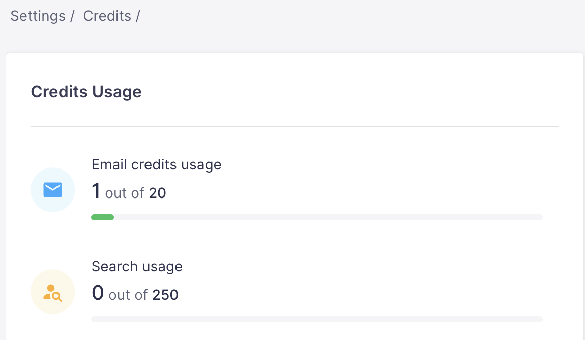 Once the Prospect IQ is enabled you get 20 Email Credits and 250 searches for free and as an early access offer.
