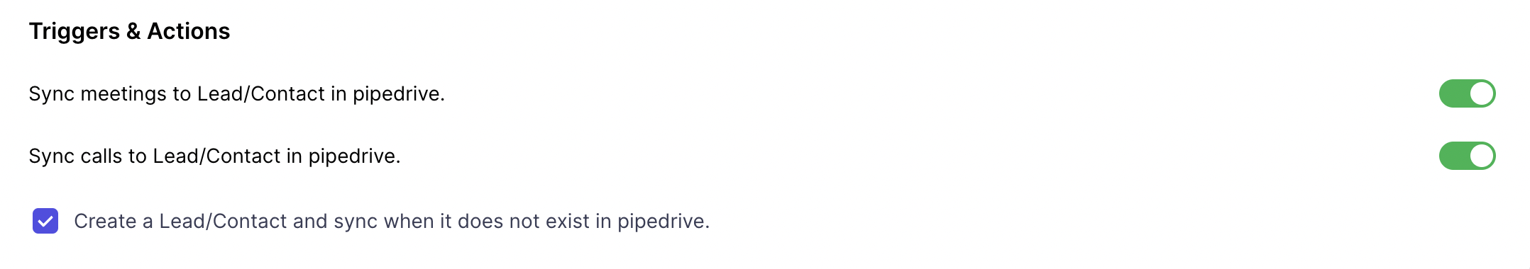 Once the Pipedrive is connected, use the Triggers and Actions for the CRM to sync the meetings/calls.
