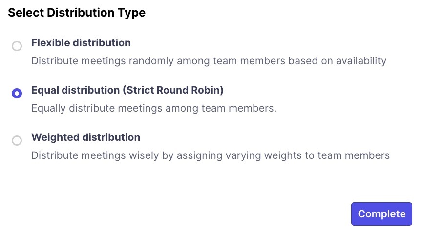 Equal Distribution ( Strict Round Robin ) – Equally distribute meetings among team members.